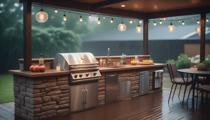 - Outdoor kitchens can get wet, but with proper weatherproofing, your outdoor cooking area can withstand the elements.